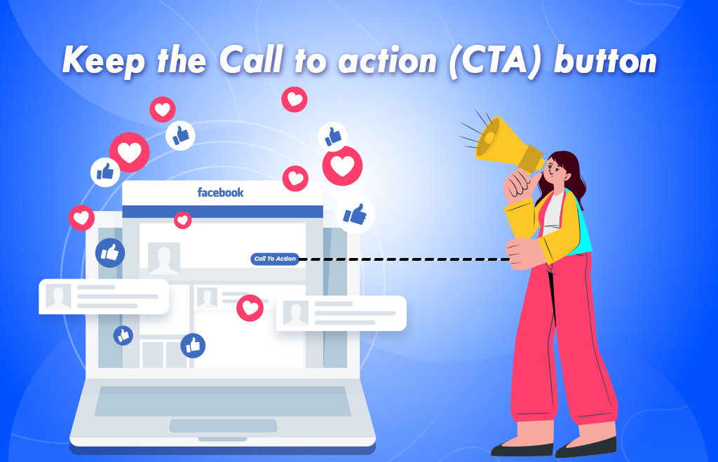 The call to action is a prompt on a website that asks the user to act. Facebook offers an option to place a simple call to action button at the top of your business page. You can choose a list of 7 buttons like Book Now, Contact Us, Use the App, Play the Game, Shop Now, Sign up, and Watch the video from the list. It can link your home page, landing page contact sheet, video, or something else. You can also measure the people clicking the CTA (call to action).