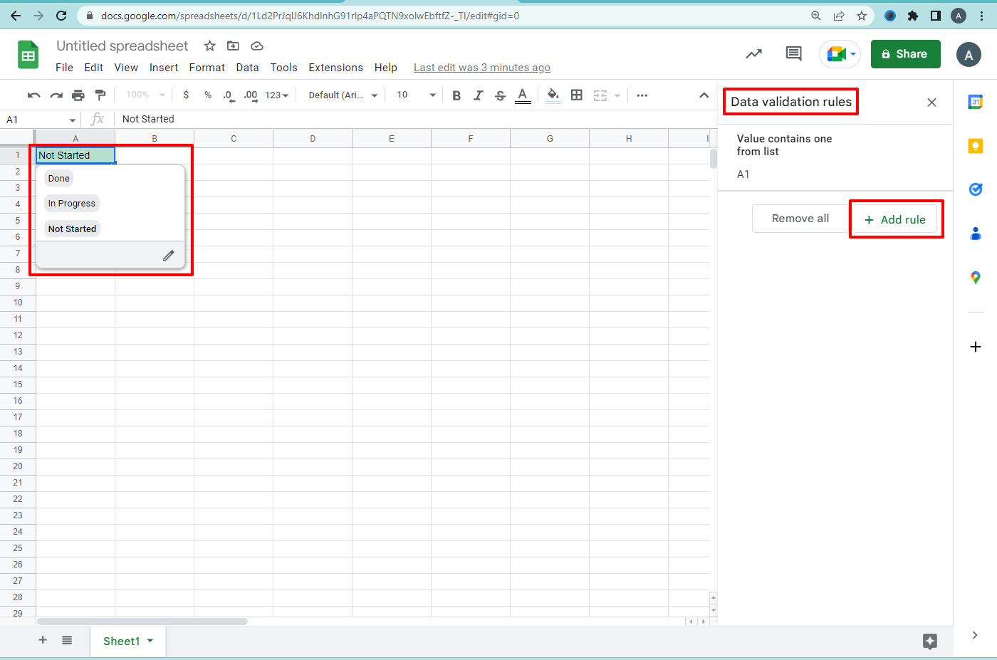 You can reduce the data entry error by limiting the choices in spreadsheets. In the status of project data, give choices like In Progress, Not Started, or Done. Specify the options displayed as a drop-down list in each cell in the column.