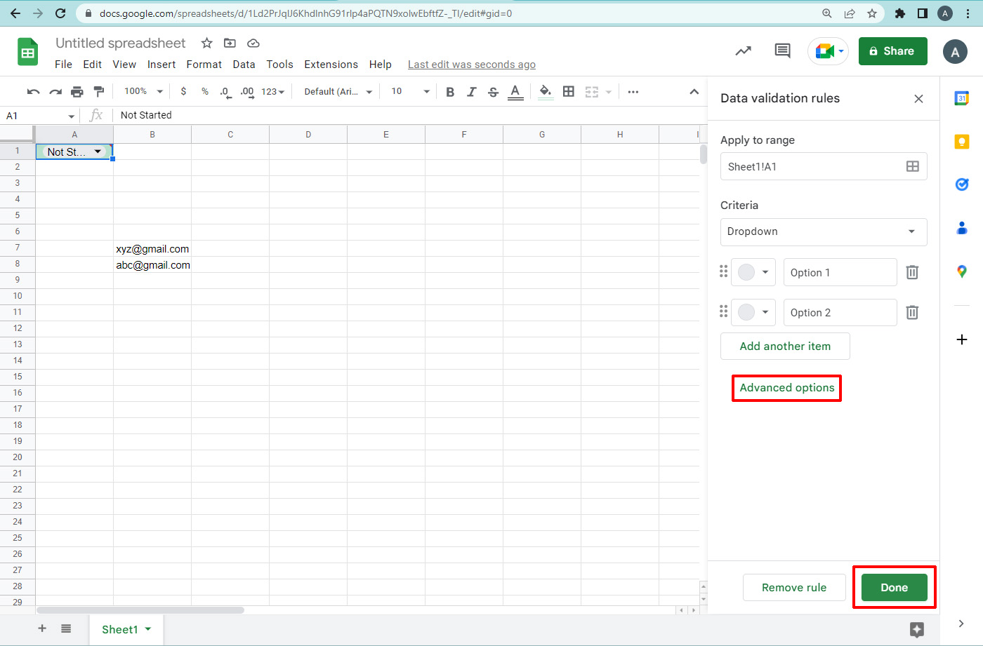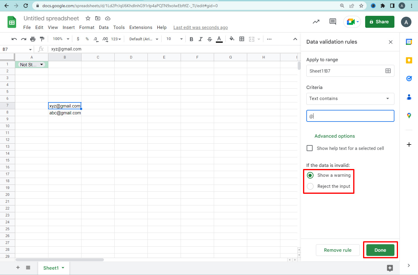Google sheet is used to enter the datas in the sheet. If you are entering the email address in the sheets, reduce the entry errors by validating the email format in the sheets.
