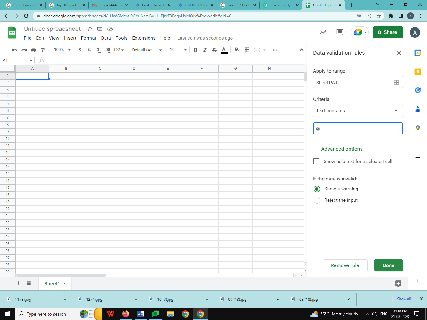Email Address Validation in Sheets