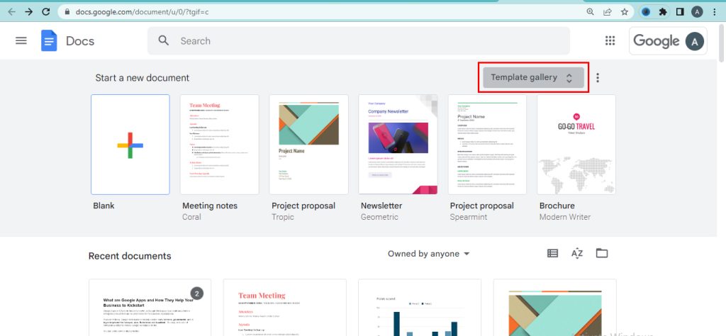 Templates are the predefined designs present in the Google Docs gallery. Find the templates from the document gallery. Edit the templates according to your wish. Using the templates reduces the time taken to create documents. The template gallery consists of different document templates. Choose a template from the list and use it. Follow the steps to create a document using the templates.