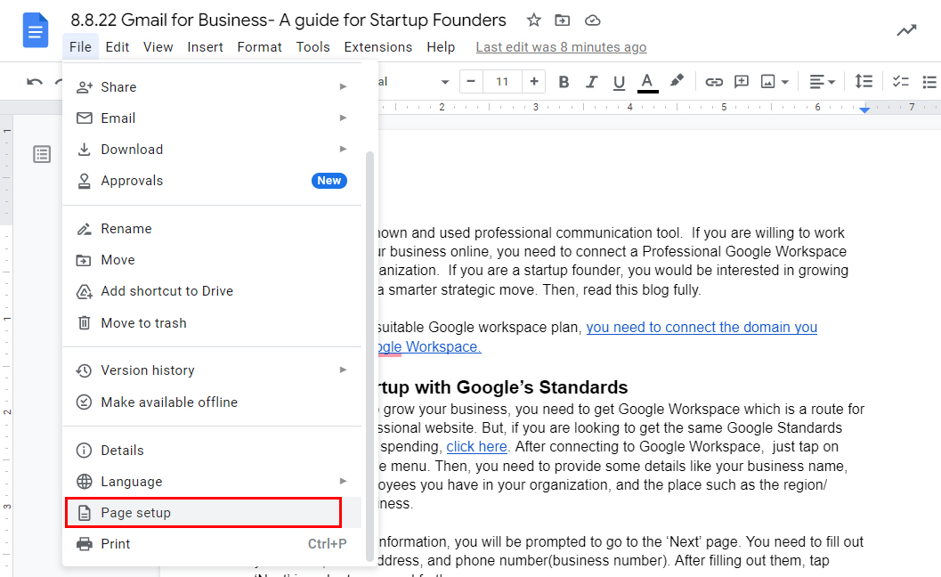- Go to page setup.
