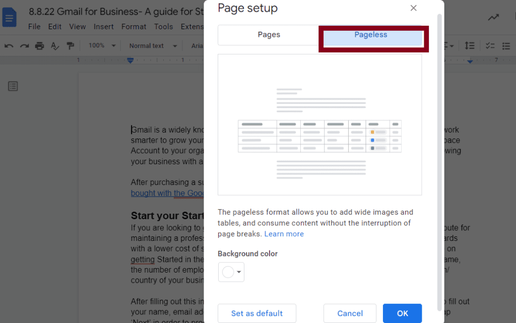The pageless format in Google Docs
