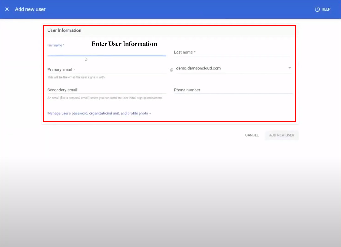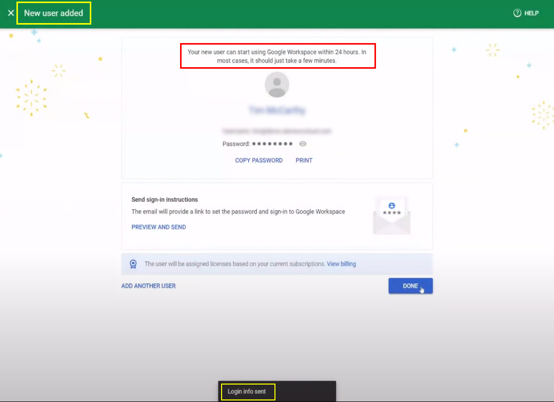 It will take 24 hours for Google services for available for new users. After adding the user, they can sign in to the Google service. A welcome mail is sent to the users with the password reset link to their secondary mail ID. The password reset link expires in 48 hours. Each account is accessed only by one user. Avoid sharing the user account with other users.