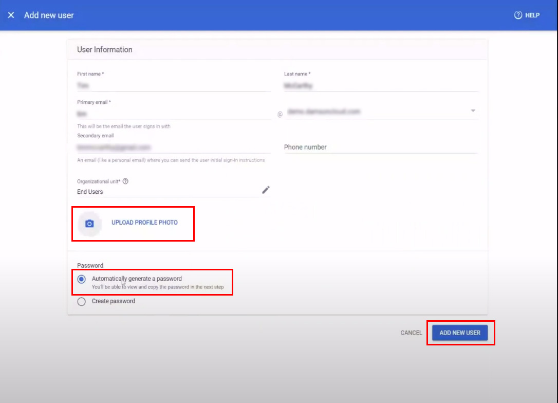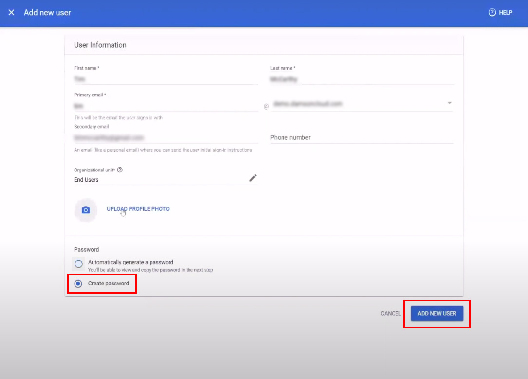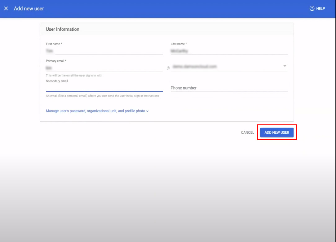 To open a user account, you need only the first and last name of the person. Get the person’s personal or other email address before creating an account. Send the sign-in instructions to that secondary email address.