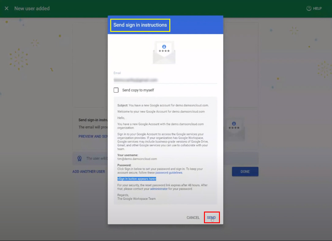 - After the user creation, the sign-in details are sent to the user’s secondary email address.