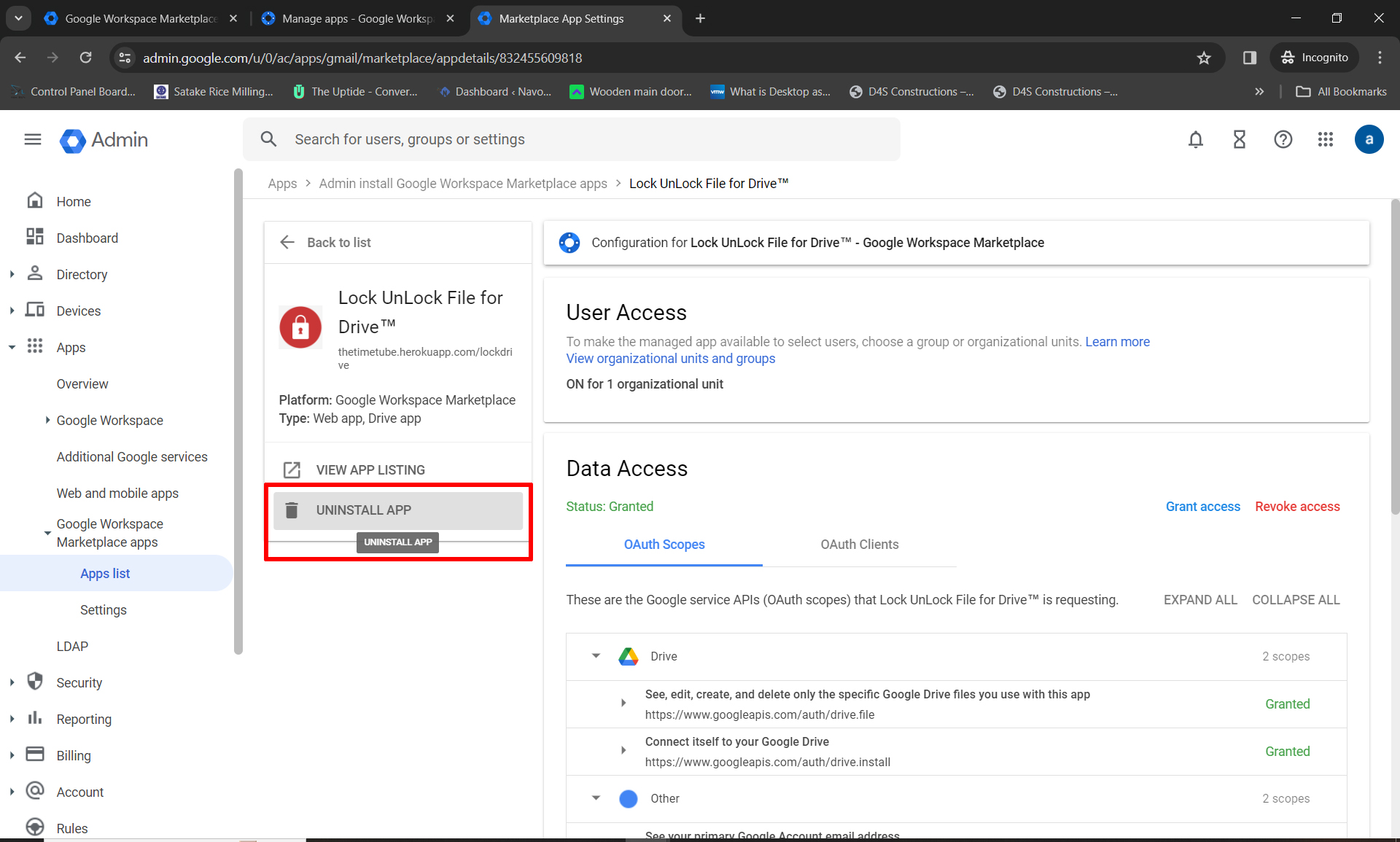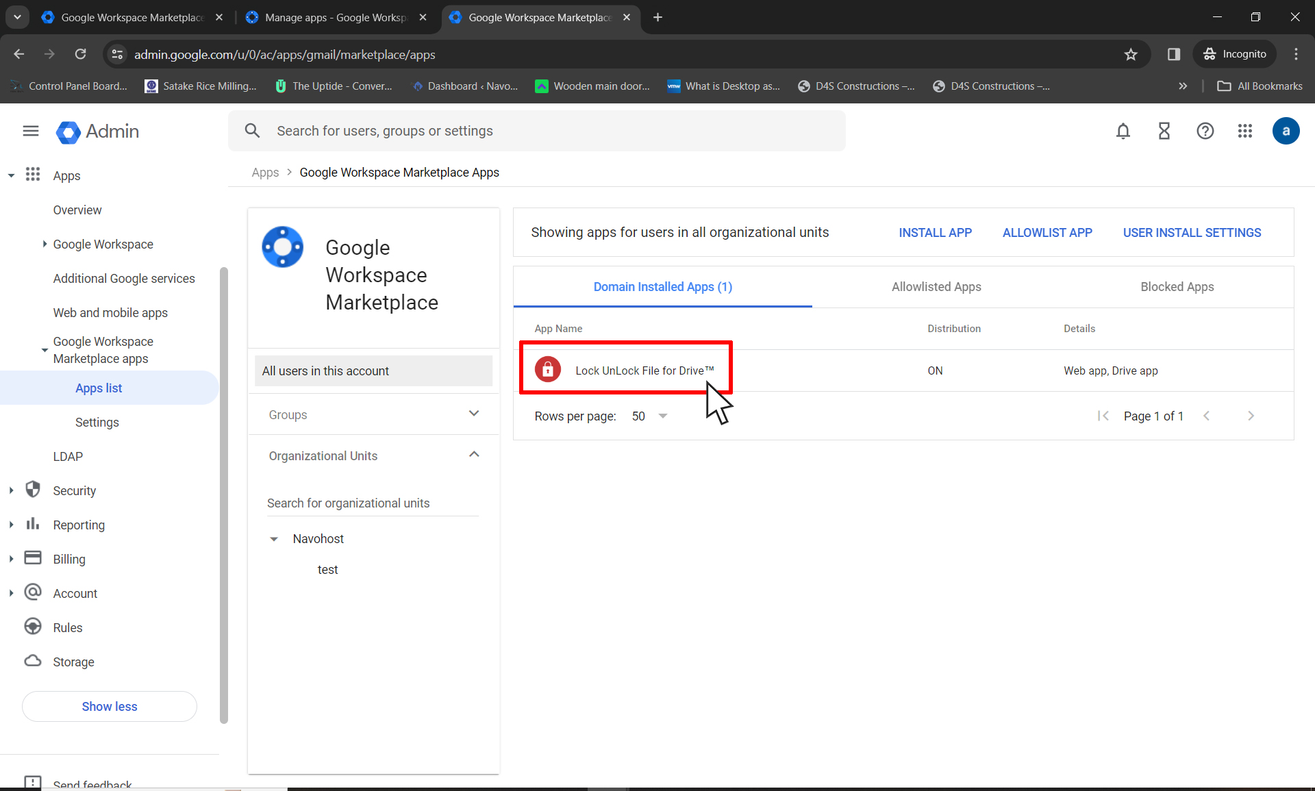 - In the Admin console, go to Menu > Apps > Google Workspace Marketplace apps > Apps list.