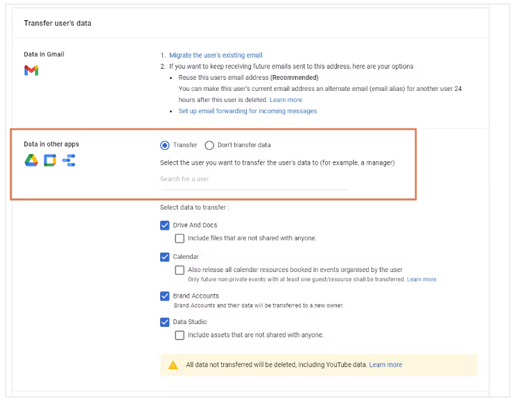 Steps to migrate Gmail and calendar data to the Google Workspace