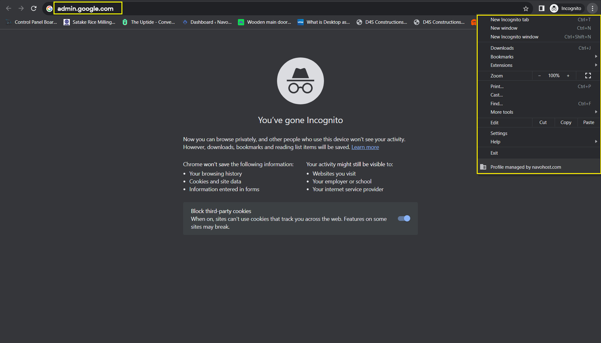 If you are using a personal Gmail account on the same computer as your managed Google Account, open an Incognito window to sign in to your Google Admin console: